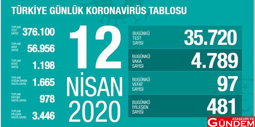 Sağlık Bakanı Fahrettin Koca, bugün 35 bin 720 test yapıldığını ve yeni 4 bin 789 vaka tespit edildiğini bildirdi.