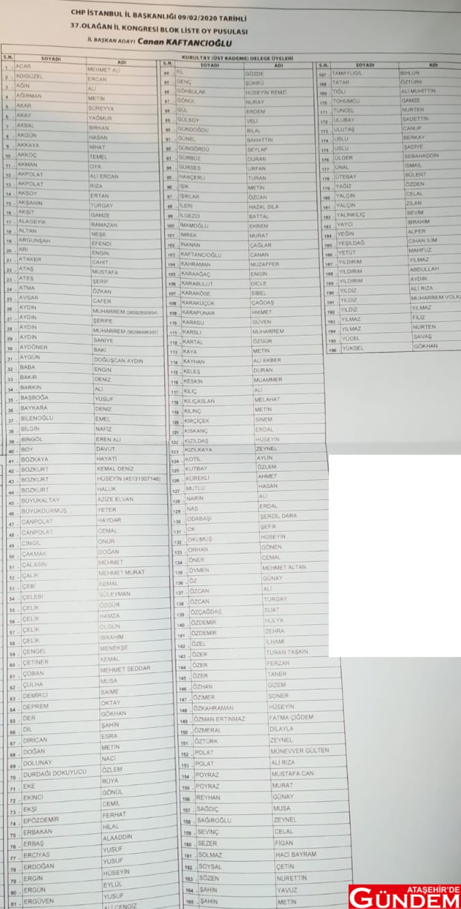 Haliç Kongre Merkezi'nin yanındaki çadırda gerçekleşen kongrede CHP’nin 39 ilçe başkanının imzalarıyla aday olan Kaftancıoğlu yeniden başkan seçildi.Seçimde blok listeyle çıkan Kaftancıoğlu, yeni yönetim belirlenirken il yönetiminde görevlendirilmek üzere Ataşehir’den de iki isim yer aldı. Listede yer alan ve 31 Mart 2019 ilçe belediye başkanlık seçimlerinde Ataşehir Belediye Başkanlığına CHP’den aday adayı olan Aysemin Gülmez 'in yanı sıra Serpil Beşok’un Ataşehir’de muhalif kanadı temsil eden isimler olması dikkat çekti.