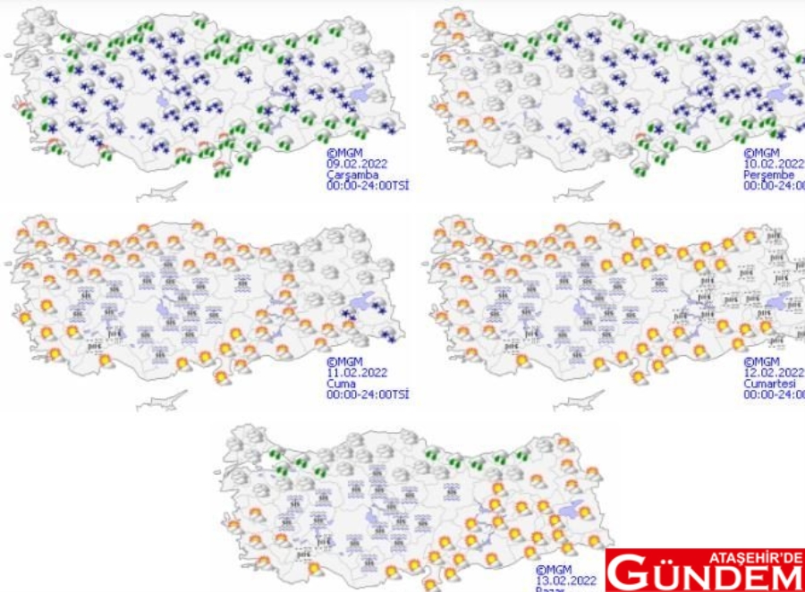 Meteoroloji Genel Müdürlüğü tarafından yapılan son değerlendirmelere göre; Ülkemiz genelinin parçalı ve çok bulutlu, Marmara’nın doğusu, İç Ege, Akdeniz, İç Anadolu, Karadeniz ile Doğu ve Güneydoğu Anadolu’nun yağışlı geçeceği tahmin ediliyor.