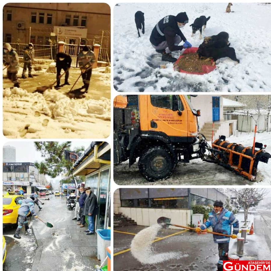 Belediye kar yağışının oluşturduğu aksaklıklara karşı, 17 mahallede 6 adet küreme aracı, 2 adet solüsyon aracı, 3 adet açık kasa kamyonet, 4 adet JCB ve 100 kişilik ekip ile olumsuz hava koşulları ile mücadeleye karşı hizmetine devam ediyor. Hafta ortasına kadar devam etmesi beklenen kar yağışında çalışmalarını sürdüren ekip için Ataşehir Belediye Başkanı Battal İlgezdi, “Her şey Ataşehir için” diyerek çalışma arkadaşlarına teşekkür etti. İlgezdi, sosyal medyadan yaptığı paylaşımda şu ifadeleri kullandı: “Kar yağışının oluşturduğu aksaklıklara karşı, 24 saat özveriyle çalışan arkadaşlarıma teşekkür ediyorum. Yolların açılması, kaldırımların temizlenmesi, devrilen ağaçların kaldırılması, can dostlarımızın düzenli beslenmesi onların sorumluluğunda. Her şey Ataşehir için”