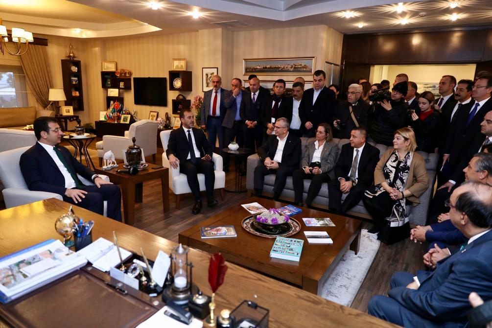 İstanbul Büyükşehir Belediye (İBB) Başkanı Ekrem İmamoğlu, Silivri Belediye Başkanı Volkan Yılmaz’ı ziyaret etti. Silivri ile 14’ncü ilçe belediyesi ziyaretini gerçekleştiren İmamoğlu’na İBB üst yönetimi tam kadro eşlik etti. Yılmaz’a misafirperverliğinden dolayı teşekkür eden İmamoğlu, “Belediye başkanımızla, Büyükşehir’le olan sürecini konuşacağız uzun uzun. Önümüzdeki sürece dair, geçmişten gelen hangi konular var, geleceğe dair neler yapılmalı, ortak akılla süreci yönetmeye dair prensibimize dönük Silivri’nin her konusunu konuşmaya çalışacağız” dedi. Silivri’nin kırsalı en geniş olan ilçelerinden bir tanesi olduğunu belirten İmamoğlu, “Dolayısıyla o boyutuyla ele alacağımız konularımız var. Başkan’ımıza teşekkür ederiz. Şu kalan ilçelerimizi 15-20 gün içerisinde bitirmeyi hedefliyoruz. Ocak ayının sonuna kalmasın istiyoruz. İnşallah o süreci tamamlayıp artık, ortak çalışma kültürünü şehrin her ilçesinde yaygın hale getirme çabasında olacağız. Bugün dolu dolu Silivri olsun istiyoruz.” diye konuştu.