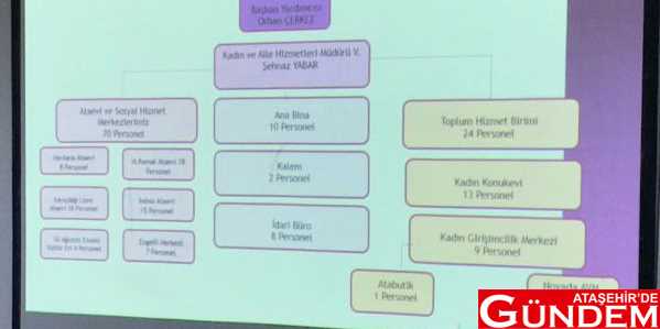 Kadın Aile Hizmetleri Müdürü Şehnaz Yabar, faaliyetlere ilişkin bir sunum gerçekleştirdi. Yabar, “Kadın ve Aile, isminden de anlaşılacağı gibi, içerisine kadını, çocuğu, engelli, yaşlıyı, herkesi alıyor. Biz de mevcut yüz dört personelimizle bu hizmeti elimizden geldiğince vermeye çalışıyoruz. Ataevlerinde kadınlara yönelik kurslar bulunuyor. Kursların tamamında halk eğitim sertifikası veriyoruz. Böylece kadınların girişim yaparak işyeri açmaları kolaylaşıyor.” ifadelerini kullandı. Şehnaz Yabar, Müdürlüğe bağlı engelli hizmeti ile engellilerin öğrenim ve eğitimleri anlamında yardımcı olunduğunu, AKAGİM’de kadınların girişimci olmaları yönünde yolun açıldığını ve bunların yanında anne ve baba destek gibi çeşitli hizmetlerin gerçekleştirildiğini söyledi.