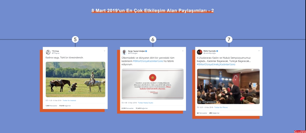 8 Mart hakkında 2019 yılındaen çok etkileşim alan tweetler şu şekilde: