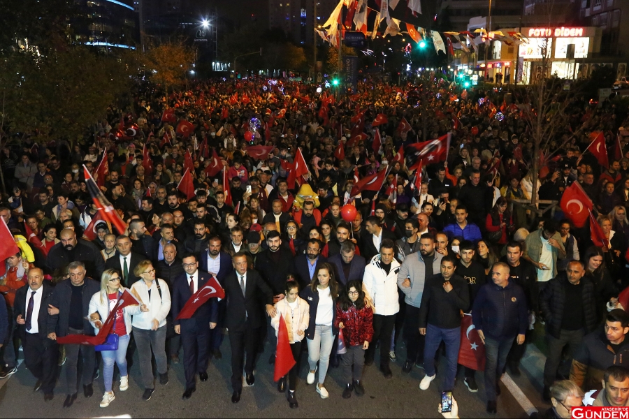 Ataşehir Belediyesi tarafından her yıl Doğu Ataşehir Migros önünde düzenlenen Cumhuriyet Bayramı Fener Alayı Yürüyüşü’ne bu yıl da on binlerce kişi katıldı. Türk Bayrakları ile özenle hazırlanan Cumhuriyet tırından çalınan marşlara ve şarkılara Cumhuriyet sevdalıları eşlik etti.