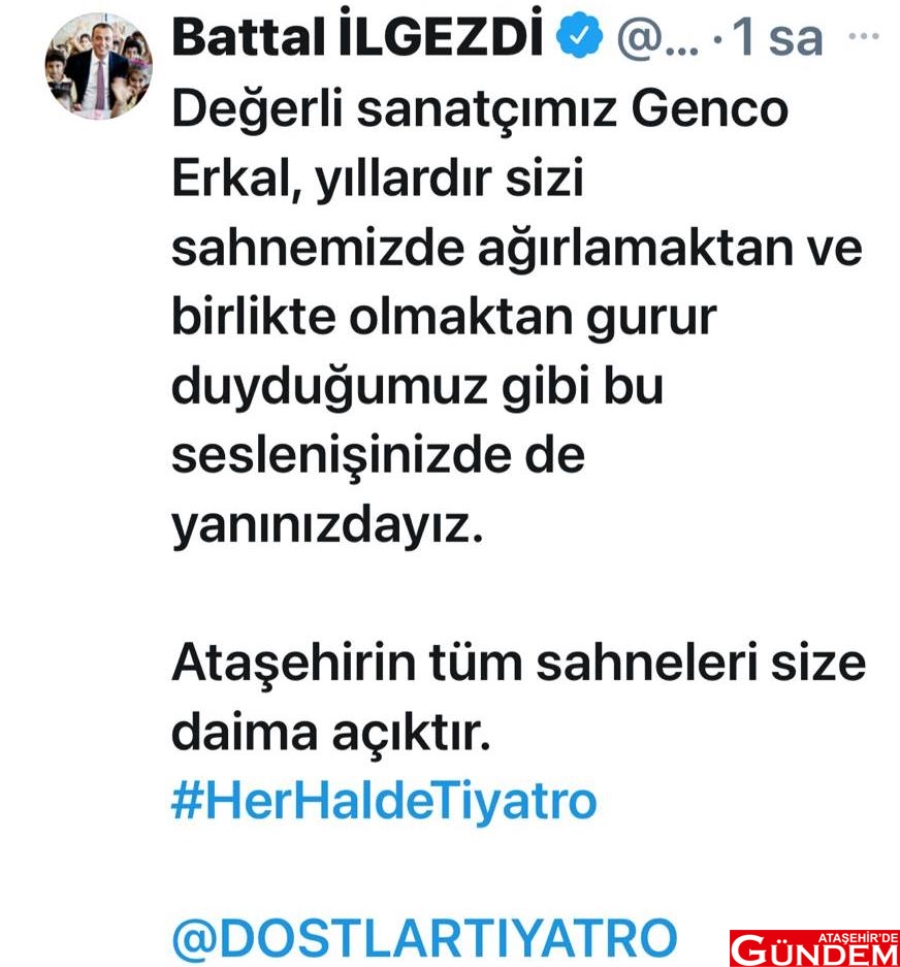 Koronavirüs salgınında en büyük yarayı sanat dünyası aldı. Uzun zamandır kapalı kalan sahnelerin önünde şimdi de açık hava sahnelerinin olmayışı engel olarak çıktı. Yeni normal için çalışmalarında açık alanları tercih eden sanatçılar, yaptıkları araştırmalarda bazı kentlerde açıkhava sahnelerinin olmamasına, var olan sahnelerin de bürokratik engellere takılmasına isyan etti. Konuyla ilgili sosyal medya hesabından açıklama yapan sanatçı Genco Erkal ise sosyal medya hesabından “Oyunlarımızı sürdürmek için açık hava sahneleri arıyoruz. Maalesef araştırdığımız kentlerde ya hiç sahne yok, ya da belediye, kayyum, rektör sahneyi bize vermiyor.” mesajını paylaştı. Erkal’ın mesajına cevap veren Battal İlgezdi ise #HerHaldeTiyatro etiketiyle mesajında şu ifadelere yer verdi: “Değerli sanatçımız Genco Erkal, yıllardır sizi sahnemizde ağırlamaktan ve birlikte olmaktan gurur duyduğumuz gibi bu seslenişinizde de yanınızdayız. Ataşehirin tüm sahneleri size daima açıktır."