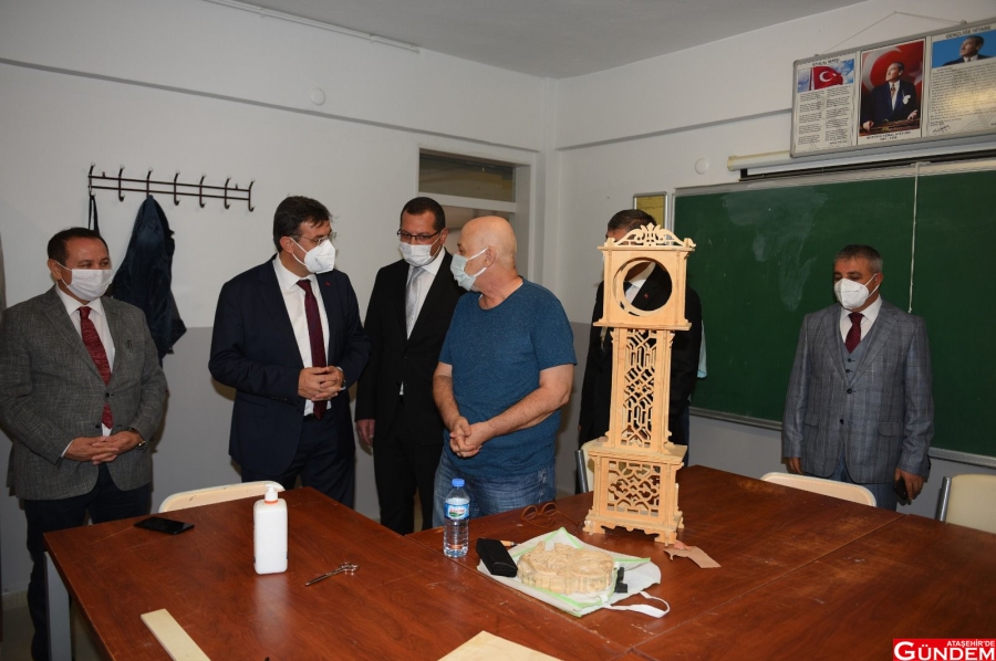 Hayat Boyu Öğrenme Genel Müdürü Sabahattin Dülger Ataşehir Halk Eğitim Merkezi’ni ziyaret etti. Kursiyerlerle tek tek sohbet eden Dülger, seramik, cam-boncuk, ağaç oymacılığı, kuaförlük atölyeleri ile beraber, yağlı boya resim, özel eğitim öğrencilerine yönelik açılan el sanatları piyano, gitar ve kağıt rölyef sınıflarında vakit geçirdi.