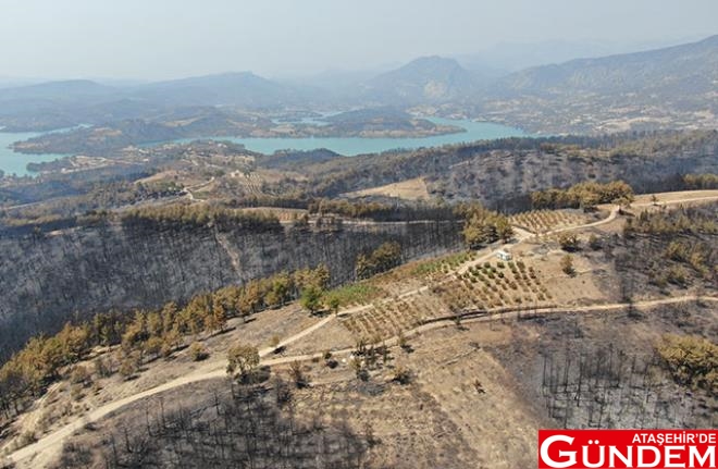 Binlerce dönüm alanın küle döndüğü orman yangınında seyrine doyum olmayan yemyeşil ormanlardan geriye simsiyah bir görüntü kaldı.
