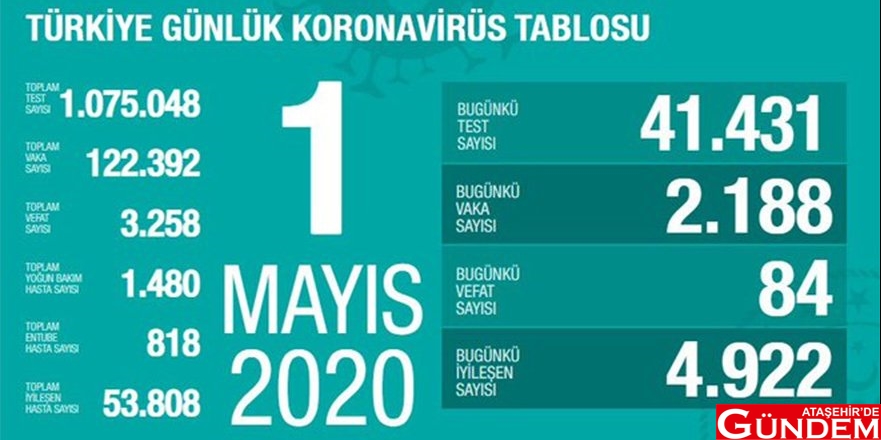 Son 24 saatte yapılan koronavirüs test sayısı 41 bin 131 olurken, vaka sayısı 2 bin 188 oldu. 84 kişi hayatını kaybederken, toplam can kaybı 3 bin 258 oldu. Bugün iyileşen kişi sayısı 4 bin 922 oldu.