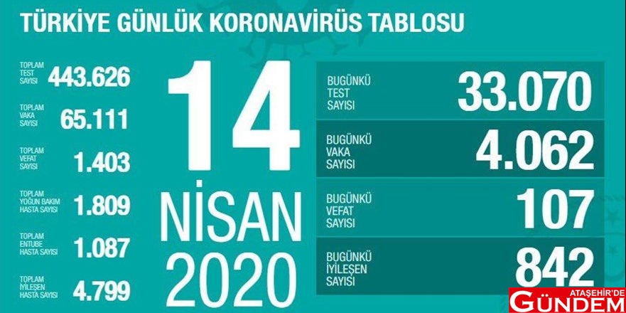 Toplantının ardından Sağlık Bakanı Fahrettin Koca, yaptığı açıklamada; “Bugün test sayımız 33 bin 70 oldu. Test sayısına bu hafta hedefimiz olan 30 bini aşmış olduk. 4 bin 62 pozitif vakamız var, toplam vaka sayısı 65 bin 11'e ulaşmış oldu. Bugün vefat eden 107 vatandaşlarımızla birlikte bin 403'ü buldu" dedi.