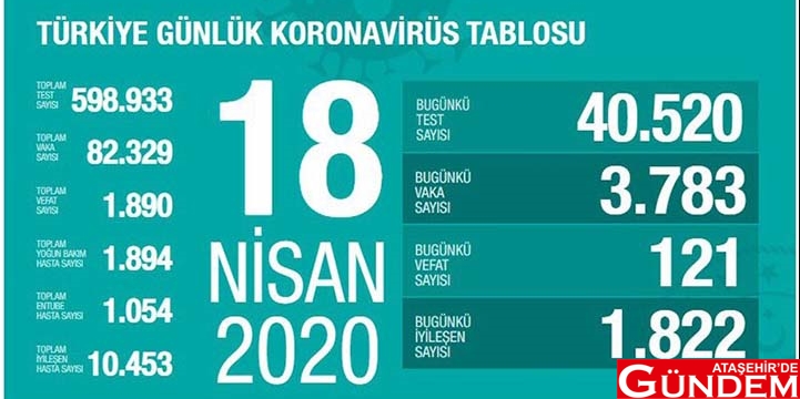 Türkiye'de son 24 saatte 3 bin 783 kişiye koronavirüs tanısı konuldu, 121 kişi koronavirüs nedeniyle hayatını kaybetti, toplam vaka sayısı 82 bin 329, can kaybı 1890 oldu.