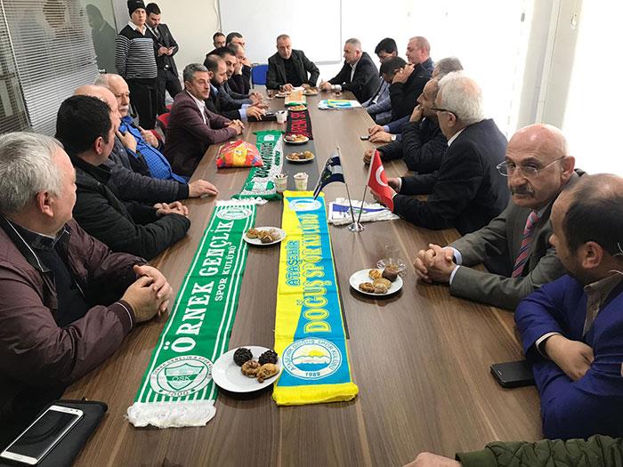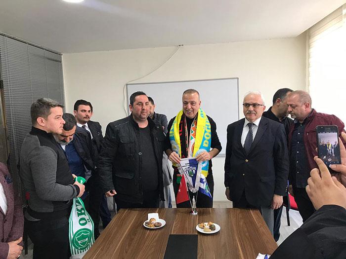 Ziyaret sonunda kulüp başkanları forma ve atkı hediyelerini İlgezdi ‘ye takdim ettiler.