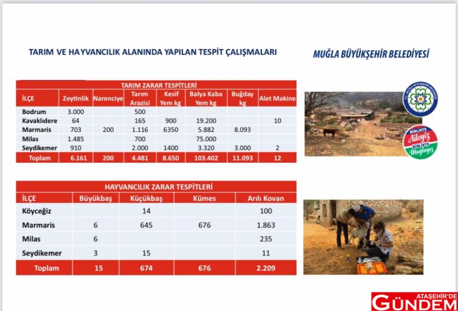 İlçe ilçe bilgilerin paylaşıldığı raporda yanan alanlar şu rakamlarla raporda yer aldı:
