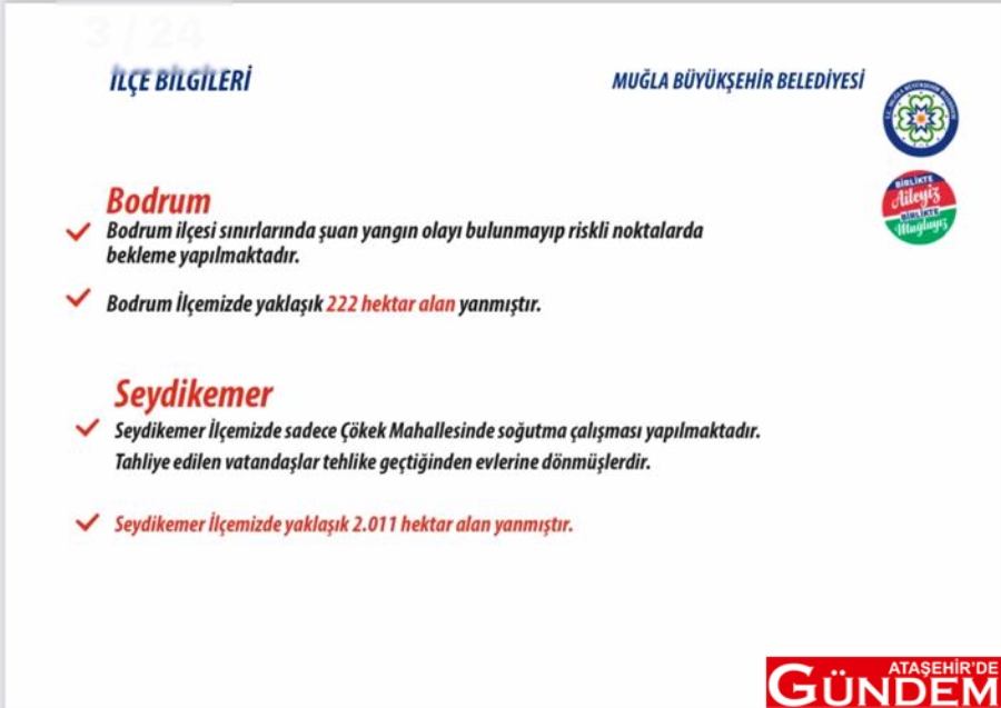28 Temmuz’da başlayan yangınlar Ege ve Akdeniz Bölgeleri’nde korkunç kayıplara yol açtı. Yer yer soğutma işlemlerinin gerçekleştirildiği bölgeler sevindirirken kontrol altına alınmayan bölgeler için ekipler alanda nöbet tutuyor. 29 Temmuz 2021 Perşembe günü Ege bölgesi Muğla Marmaris, Milas ve Bodrum ilçelerinde 30 Temmuz’da ise Fethiye’ye sıçrayan yangın Köyceğiz Kavaklıdere, Seydikemer Menteşe ilçelerinde devam etti. Marmaris bölgesinde 13 bin hektar alanın yandığını belirten yetkililer bölgede soğutma işlemlerinin devam ettiğini de raporladı. Marmaris ilçesinde yangın söndürme çalışmaları Hisarönü, Orhaniye, Bayır, Osmaniye ve Çiftlik Mahalleleri olarak beş farklı bölgede devam ettiği belirtildi. Milas bölgesinde de söndürme çalışmalarının birçok noktada devam ettiğinin bilgisi paylaşıldı.