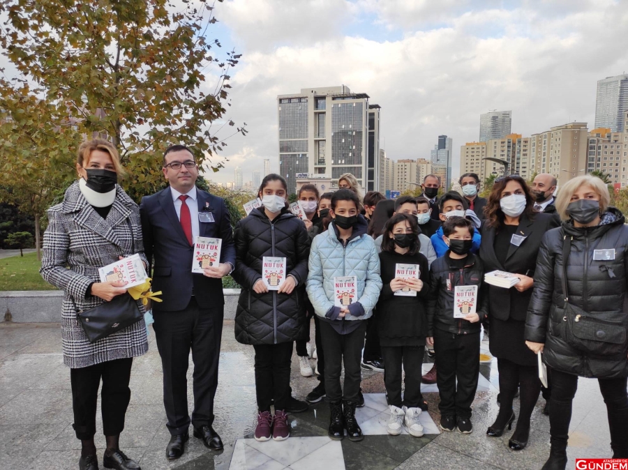 Dakikalar öncesinden alanı dolduran katılımcılar törenin başlamasıyla birlikte Atatürk Anıtı’na çelenk sunumunu gerçekleştirdiler. Çelenk sunumunun ardından 2 dakikalık saygı duruşu ve İstiklal Marşı ile 83 yıl önce kaybettiğimiz Cumhuriyeti borçlu olduğumuz Mustafa Kemal Atatürk’ün ölüm yıl dönümünü anma töreni Cumhuriyet Meydanı’nda sona erdi.Tören sonunda CHP Ataşehir İlçe Başkanı Celal Yalçın öğrencilere NUTUK hediye etti.