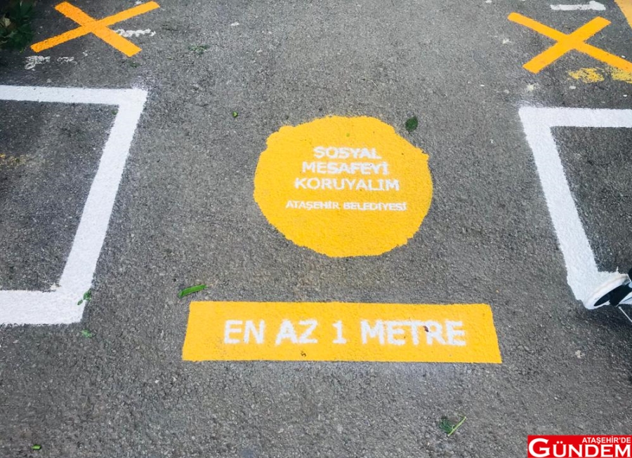 Koronavirüs önlemleri kapsamında yeni bir uygulamaya geçen Ataşehir Belediyesi, ilçede bulunan kapalı semt pazarlar alanlarına, vatandaşların tezgah önlerinde duracakları yeri ve mesafelerini belirlemek amacıyla işaretleme çalışmaları yapıyor.