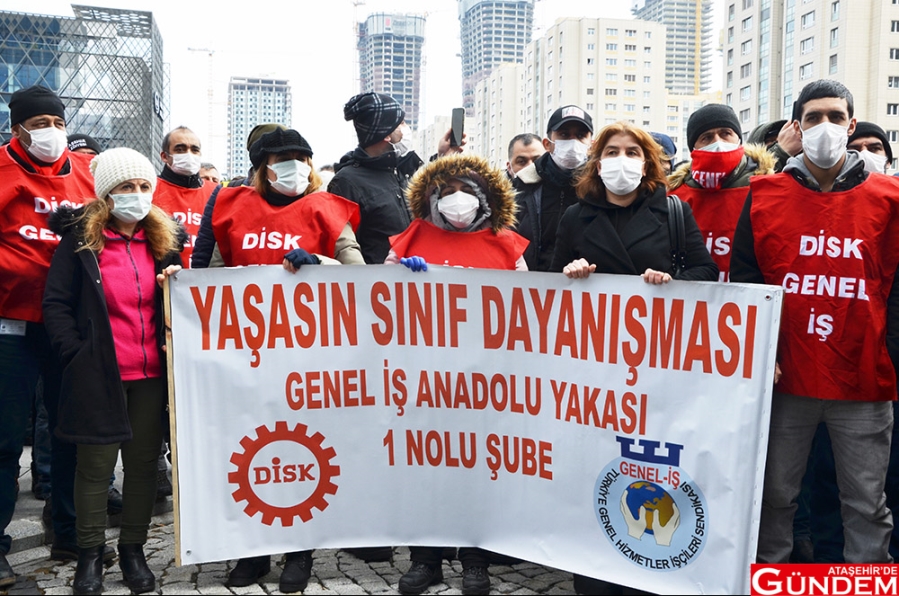 DİSK/GENEL İŞ Sendikası bugün Ataşehir Belediyesi önünde grev ilanlarını astı. DİSK/GENEL İŞ İstanbul Anadolu Yakası 1. No’lu Şube Başkanı Ahmet Arıkan’ın sözcülük yaptığı eylemde işçiler arasında sözlü, zaman zamanda fiziksel tartışmalar yaşandı. Ahmet Arıkan, “3 gündür devam eden grevimiz var. Yapılamaz diyorlardı. İşçi isterse yapar. Ayrışmaları bir kenara iterek, bizi bölmeye çalışanları bir tarafa iterek, koltuk derdinde olanları bir kenara iterek, işçisiyle Kadıköy dik durmuştur. Selam yolluyorum buradan."