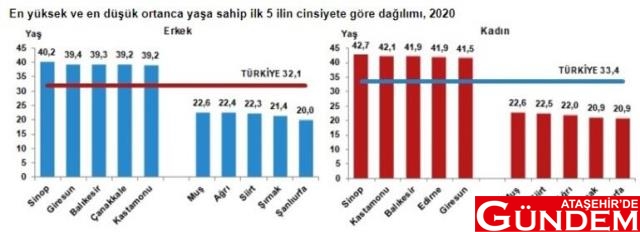 ORTANCA YAŞI EN YÜKSEK OLAN İL SİNOP, EN DÜŞÜK OLAN İL ŞANLIURFA OLDU