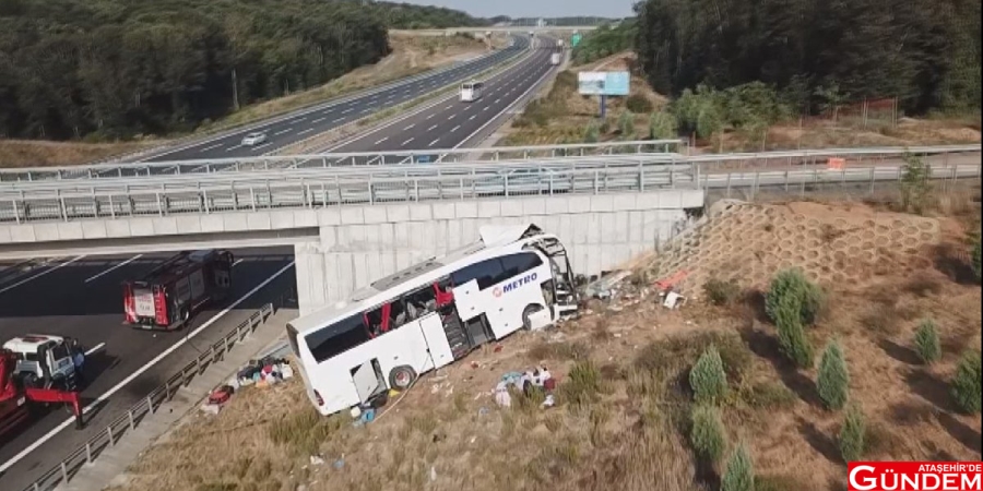 Kaza sabah saatlerinde Sarıyer Çiftalan mevkinde meydana geldi. İstanbul Havalimanı istikametine gittiği öğrenilen Metro Turizm’e ait yolcu otobüsü Kuzey Marmara Otoyolu’ndaki bir üst geçidin duvarına çarptı.